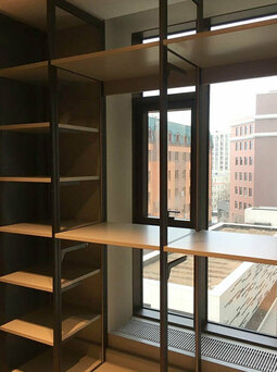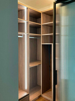 Мы производим гардеробные из ЛДСП, МДФ с облицовкой пластиком или с различными отделками, также используем профиль - всегда предлагаем наиболее подходящий вариант.